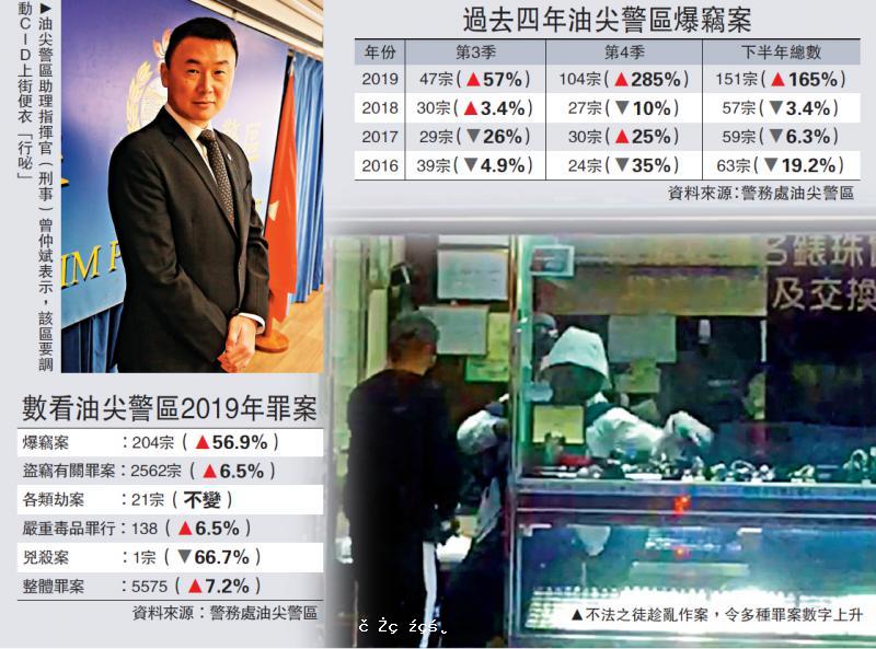 暴徒掟汽油彈、堵路等四處破壞,大大加重警隊工作量,不法之徒乘機犯案,在暴亂重災區的油尖警區,過去半年爆竊、行劫罪案急增,行劫案較上半年急升近九倍,爆竊案宗數更破五年新高。油尖警區助理指揮官(刑事)曾仲斌表示,「破窗效應」...[详细]