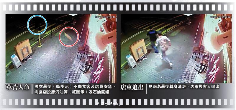暴徒「逆我者亡」,又襲擊撐警食肆。深水埗一間四川菜館,撐警店東被多次滋擾,繼早前被暴徒「老屈」窩藏斬人罪犯,並揚言要杯葛該店,上月尾再遭暴徒到來大肆搗亂。暴徒惡行更變本加厲,昨凌晨兩名黑衣口罩暴徒竟然向店內投擲汽油彈及石...[详细]