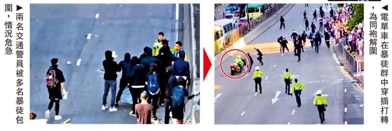 急智交警駕車驅暴徒 為同袍解圍