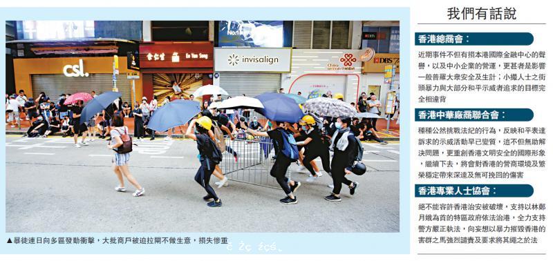 過去兩個月,暴徒打砸燒搶無惡不作,社區遭受持續的騷擾及創傷,打工仔「被罷工」,商舖頻頻落閘,經濟數字呈現下滑,香港社會秩序及香港繁榮發展面臨嚴峻局面。基層市民、中產人士,商界各業均不能置身度外,獨善其身,覺醒的市民不斷發...[详细]